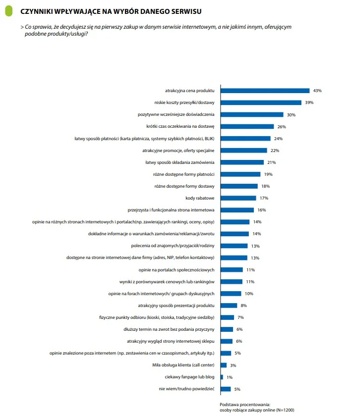 Wspomniany raport podkreśla również, że choć opinie są najważniejsze do oceny wiarygodności, to nie one decydują w największym stopniu czy klient zdecyduje się na zakup w tym sklepie. W tym aspekcie dominuje kwestia ceny i dostawy – a więc atrakcyjność Twojej oferty!
