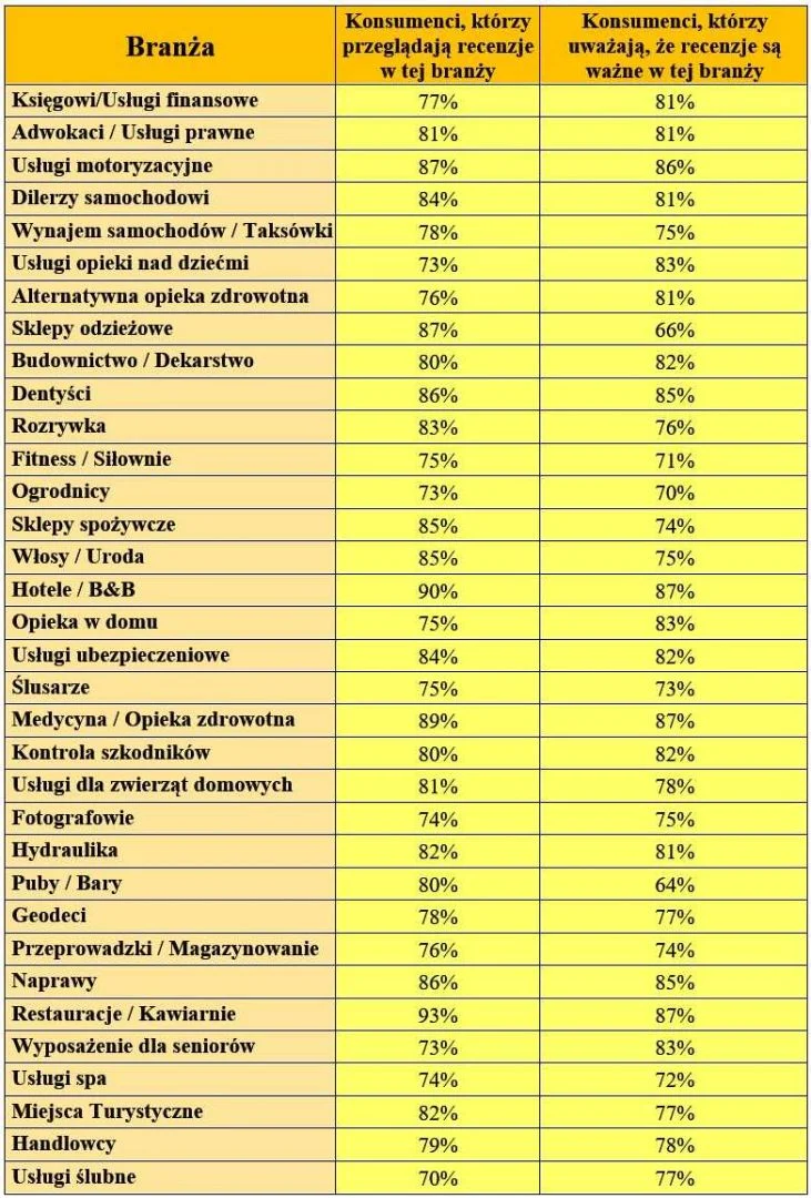- Branże, dla których recenzje są najważniejsze