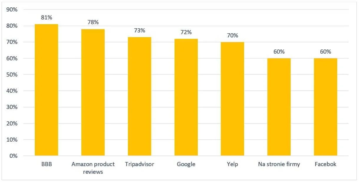 60% konsumentów ufa także recenzjom na stronie internetowej firmy.