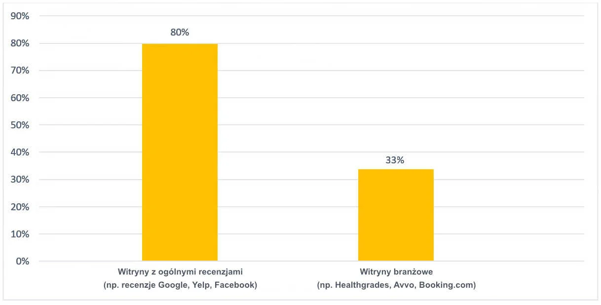W tym roku zapytaliśmy również respondentów, czy ma znaczenie to, że firma znajduje się na wielu portalach z recenzjami. 72% osób odpowiedziało twierdząco – co oznacza, że warto publikować opinie we wszystkich miejscach, w których mogą szukać ich klienci. Warto zacząć jednak od miejsca, w którym znajduje się główna konkurencja.