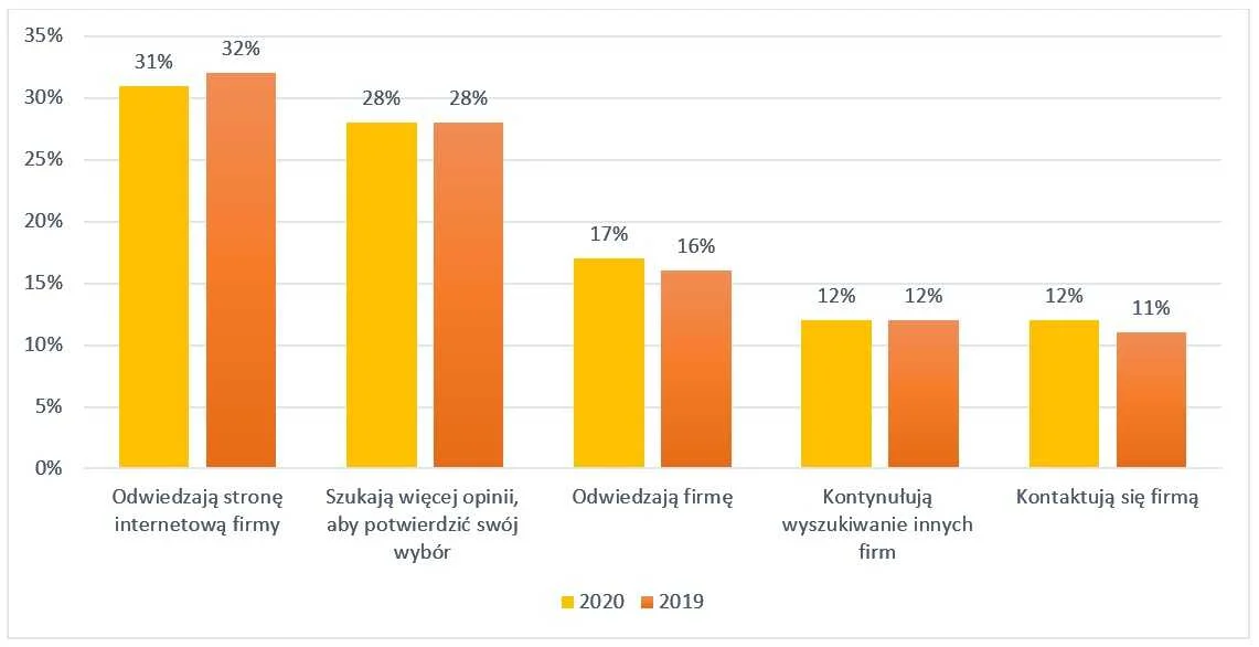 Od czasu naszego raportu z 2019 roku zachowanie klientów odnośnie pozytywnych opinii nie zmieniło się drastycznie. Nadal wielu z nich zmotywowanych opiniami odwiedza stronę internetową firmy.
