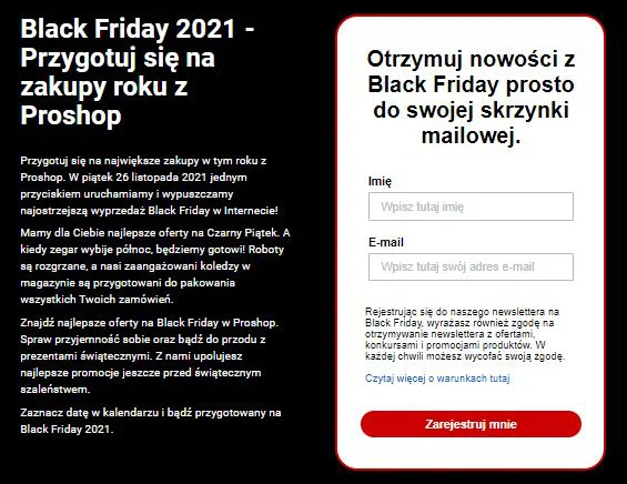 Znakomicie poradziła sobie z tym platforma Proshop. Już teraz możesz zapisać się do ich newslettera, który jest pewnego rodzaju ‘przypominajką’. Równo z wybiciem północy na Black Friday 2025 otrzymasz na maila najlepsze oferty od Proshop. Bez zbędnego zagłębiania się w zakamarki Internetu.