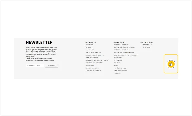 4 Szpaki na sklepie online prezentuje widget z przekierowaniem do pieczęci uznania eKomi. Dzięki niemu potencjalni klienci nabierają zaufania do marki, co skutecznie skraca proces podejmowania decyzji zakupowych.
