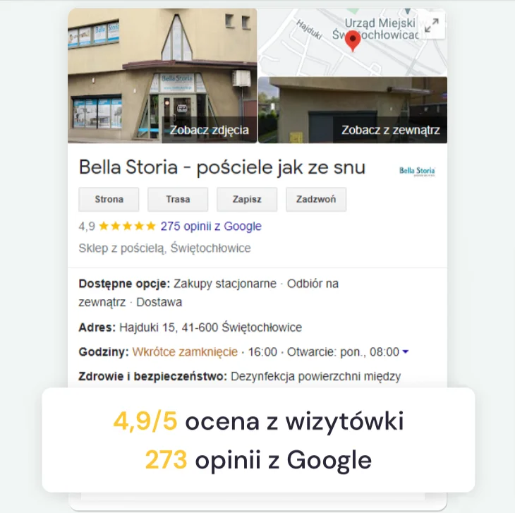Gwiazdki w płatnych reklamach znacznie wyróżniają je w wyszukiwarce Google. Razem z Zaufane.pl poprawiliśmy wiarygodność naszego sklepu, a także zwiększyliśmy konwersję pochodzącą z Google Ads i Google Shopping.