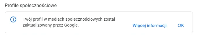 Przykładowa informacja o automatycznej zmianie danych w wizytówce Google