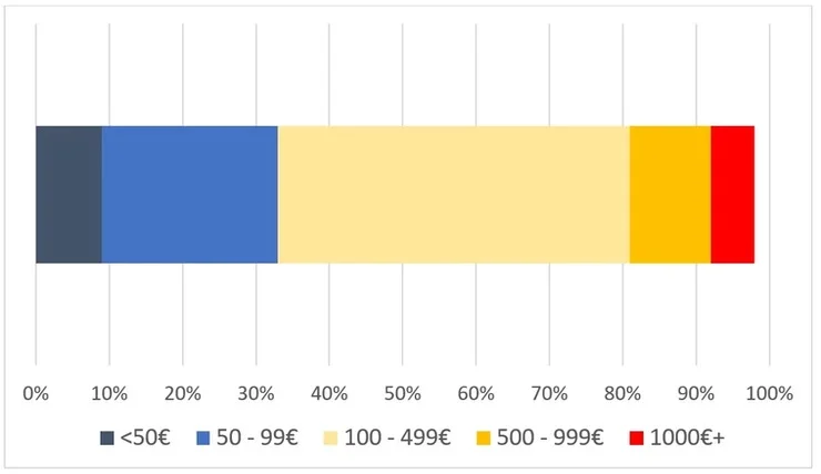 Diag. 1. Dominująca wielkość koszyka w e-commerce w Niemczech. Za: Eurostat