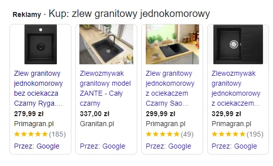 Wygląd kampanii produktowej w wyszukiwarce Google