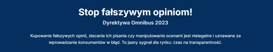 Dyrektywa Omnibus jasno określa, że kupowanie fałszywych recenzji i sztuczne podbijanie liczby pozytywnych opinii to nieuczciwe praktyki rynkowe, które grożą wysokimi karami finansowymi oraz zniszczeniem reputacji swojej firmy.