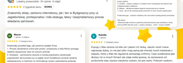 Cześć! W dzisiejszym blogu: Wizytówka Google Moja Firma - bezpłatne narzędzie, które umożliwia właścicielom sklepów internetowych tworzenie, zarządzanie i optymalizację profilu marki w Google. Jej głównym zadaniem jest pomoc w przyciągnięciu nowych klientów z wyszukiwarki i map. Zawiera m.in. nazwę firmy, godziny otwarcia, adres, dane kontaktowe oraz bardzo cenne źródło informacji dla potencjalnych klientów - opinie o firmie.
