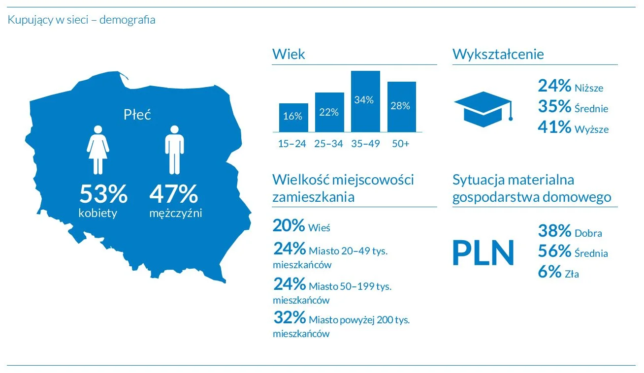 Kupujący w sieci - demografia (źródło: Raport ‘E-commerce w Polsce 2021’)