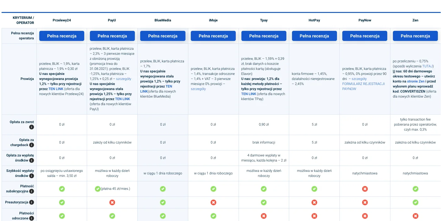 Porównanie bramek płatności dla e-commerce - źródło convertis.pl