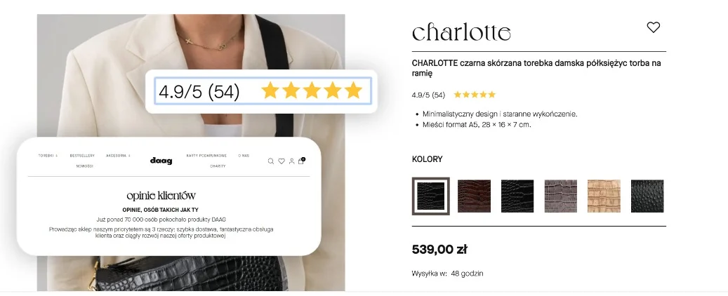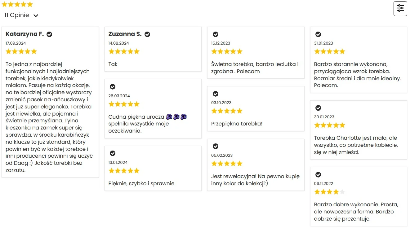 Rys. 6. Widget na karcie produktu https://e-daag.com.pl/ – recenzje tekstowe (UGC)