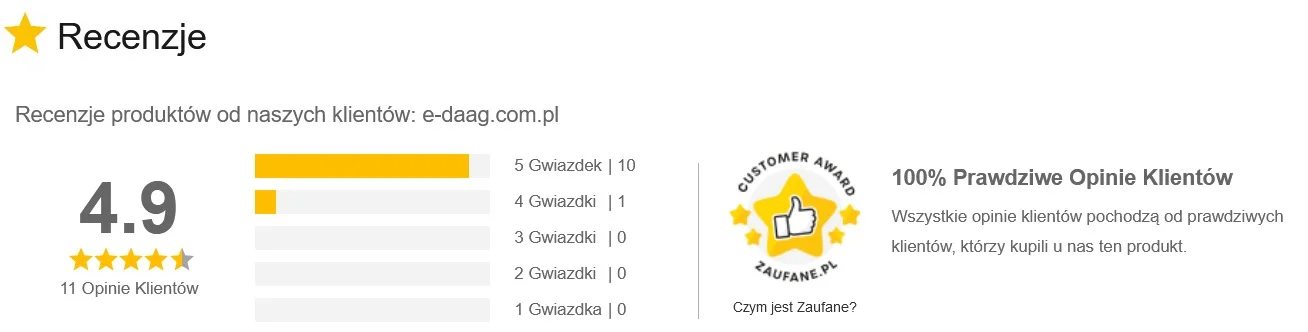 Rys. 4. Widget na karcie produktu https://e-daag.com.pl/ – gwiazdki produktowe