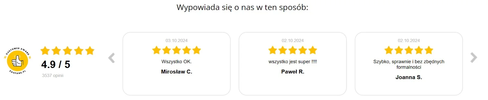 Jeśli chcesz wdrożyć widgety, które wyglądają profesjonalnie, działają lekko i są w pełni zgodne z wytycznymi Google – zespół Zaufane.pl chętnie Ci w tym pomoże. Skontaktuj się z nami, a wspólnie dobierzemy rozwiązanie, które najlepiej wyeksponuje opinie Twoich klientów i przełoży się na wzrost sprzedaży!