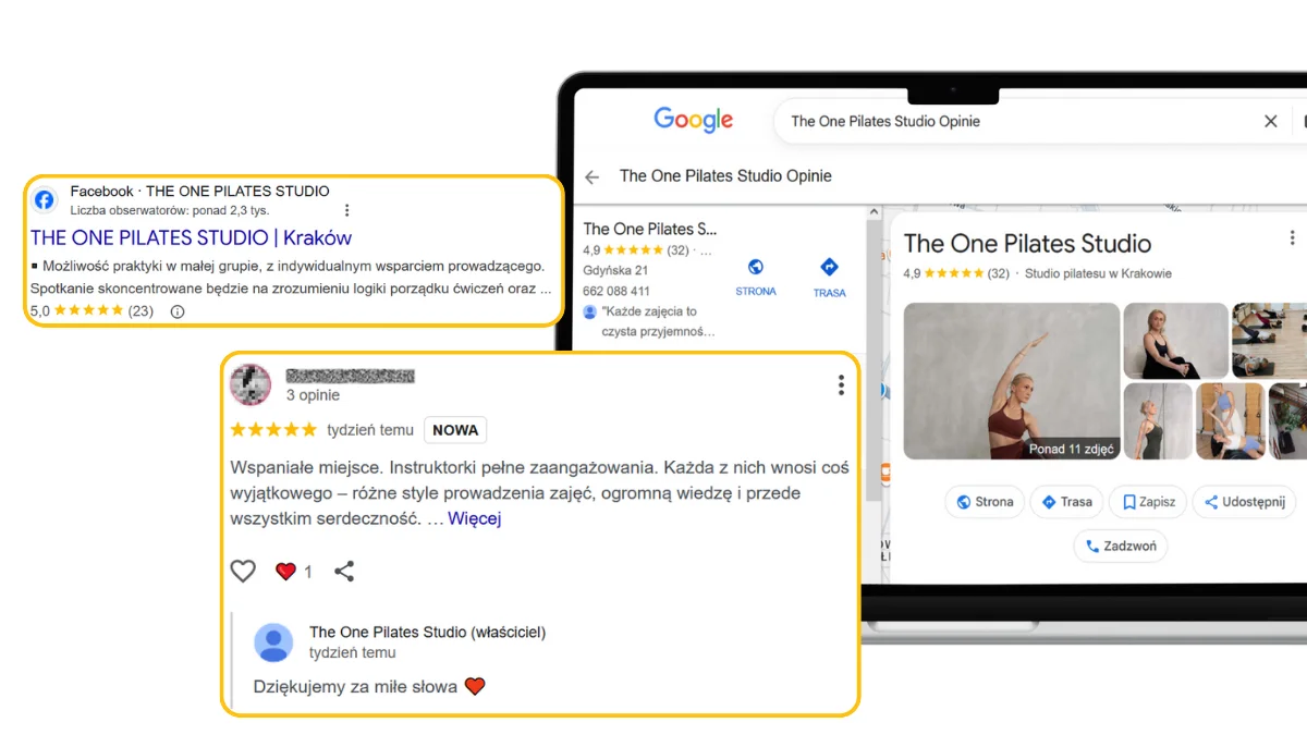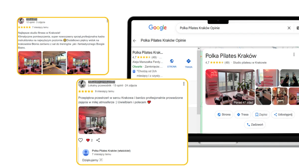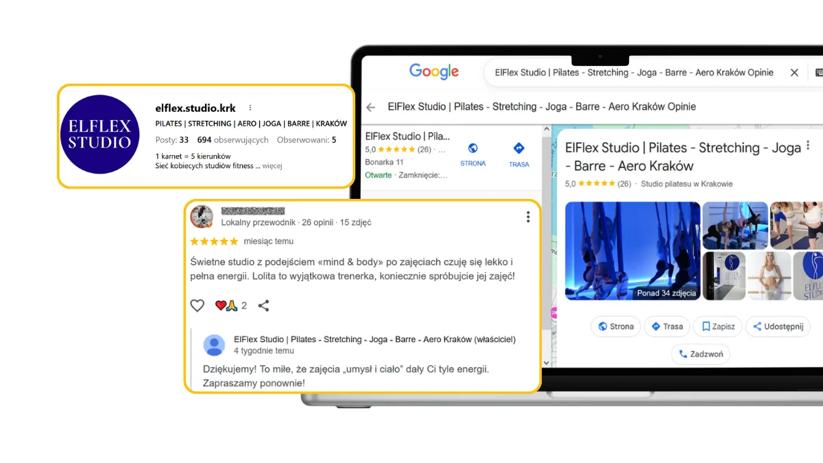 - Rozmawiaj: Odpisuj na każdą opinię! To sygnał dla algorytmu Google i dla ludzi, że Twoje studio żyje.
