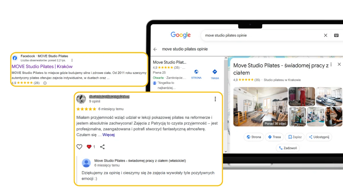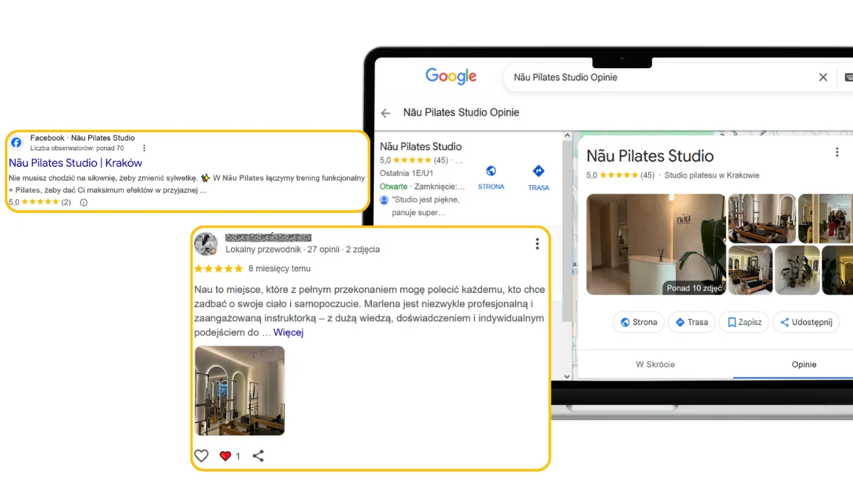 1. Google to Twoja pierwsza recepcja Zanim klient do Ciebie zadzwoni, sprawdzi Cię w sieci. Jeśli masz ocenę poniżej 4,5 lub ostatnia opinia jest sprzed roku, klient pójdzie do konkurencji, która ma aktualne rekomendacje.