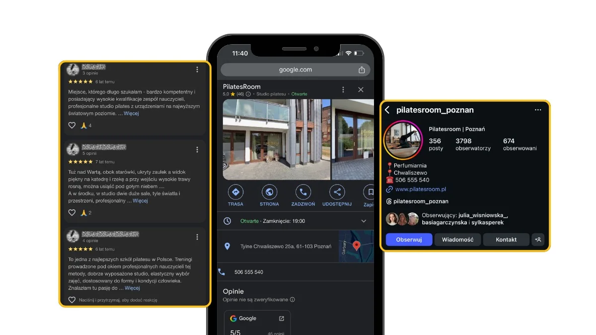- Treść ważniejsza niż reklama: Potencjalni klienci szukają w opiniach odpowiedzi na swoje obawy: "Czy dam radę jako początkujący?", "Czy jest czysto?", "Czy instruktorzy pomagają?".