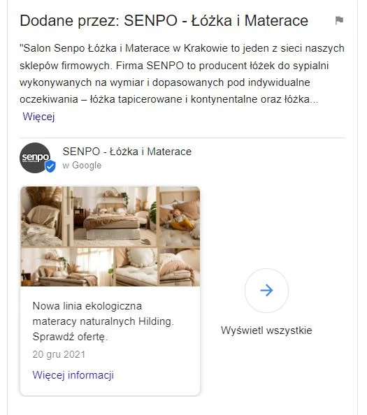 To idealna sekcja potwierdzająca, że Twoja firma działa i ma się świetnie. Aktualne informacje dostępne z poziomu wizytówki mogą zachęcić klientów do odwiedzenia portalu. Tym bardziej, że w aktualizacjach możesz dodać dowolny link kierujący np. do landingu z ofertą specjalną!